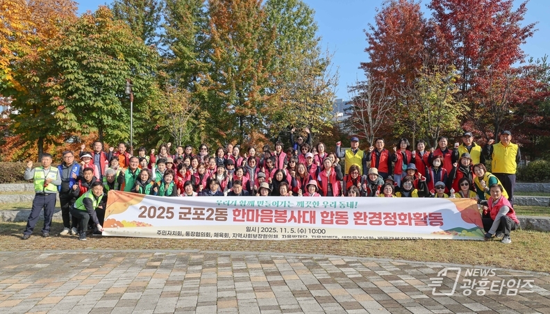 [광흥타임즈 = 조수제 기자] 군포2동은 지난 5일 군포2동 한마음봉사대가 가을을 맞이하여 지역 주민들이 더욱 쾌적하고 안전한 환경에서 생활할 수 있도록 환경정화활동을 실시했다고 밝혔다.