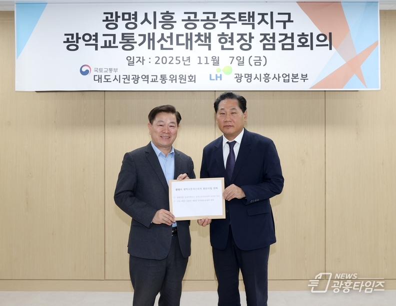 박 시장은 “광명시흥 3기 신도시 발표 당시 정부가 약속한 ‘선교통 후입주’ 원칙이 반드시 지켜져야 한다”며 “광역교통개선대책을 조속히 추진해 신도시 입주 전에 교통 불편이 최소화될 수 있도록 해달라”고 촉구했다.
