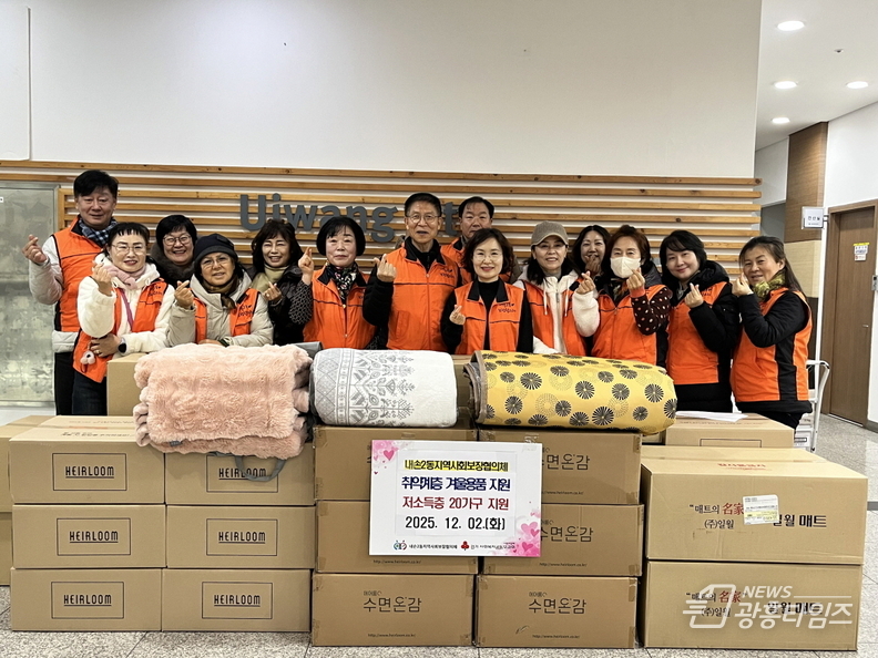 [광흥타임즈 = 구민지 기자] 의왕시 내손2동 지역사회보장협의체는 12월 2일, 관내 저소득 취약계층 20가구에 따뜻한 겨울나기를 위한 겨울용품을 전달했다.