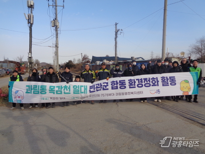 [광흥타임즈 = 조수제 기자] 시흥시 과림동 행정복지센터는 지난 12월 3일 관내에 주둔하는 제7578부대 및 동 관계단체와 합동으로 목감천 일대 환경정화 활동을 진행했다.