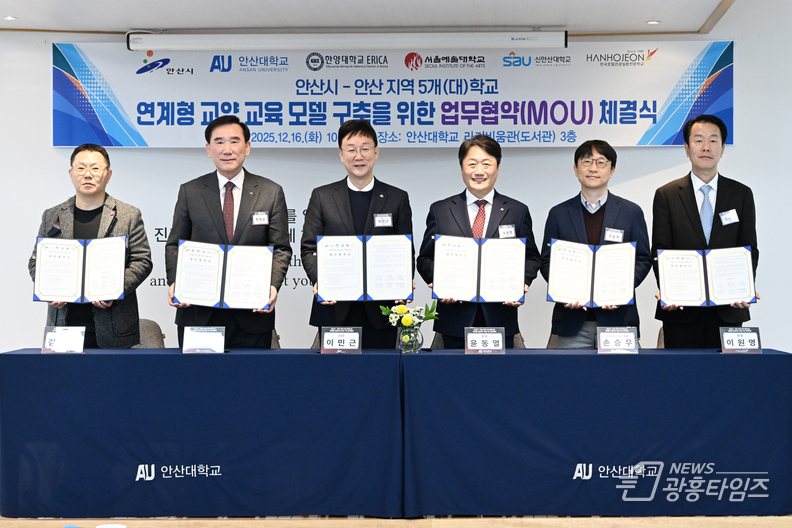 안산시는 지난 16일 안산대학교 라키비움관에서 관내 소재 대학과 ‘지역대학 연계형 교양 교육 모델 구축 협약식’을 개최했다고 17일 밝혔다.