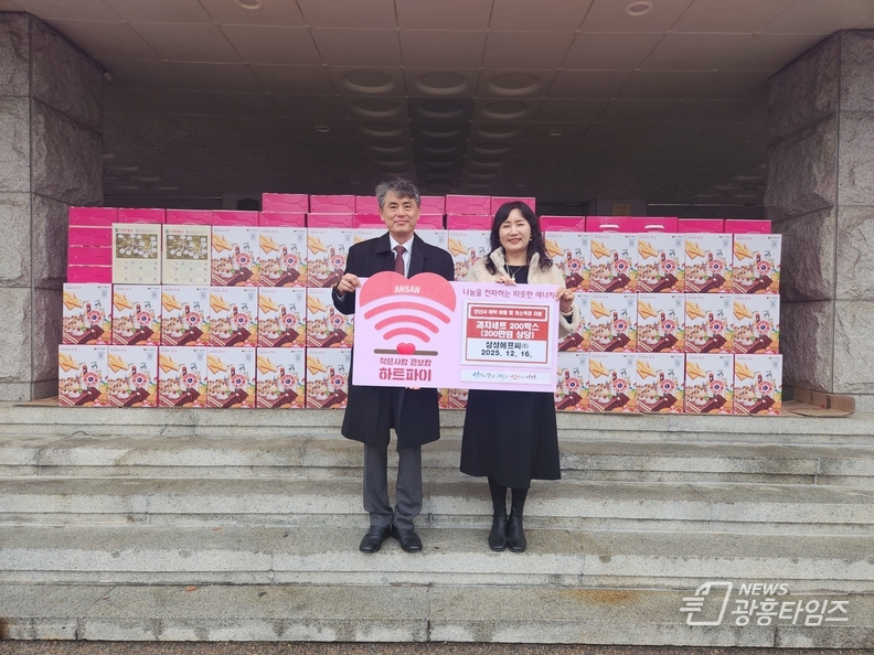 [광흥타임즈 = 조수제 기자] 안산시는 지난 16일 삼성에프씨(주)로부터 과자 선물세트 200개(약 200만 원 상당)를 기탁받았다고 17일 밝혔다.
