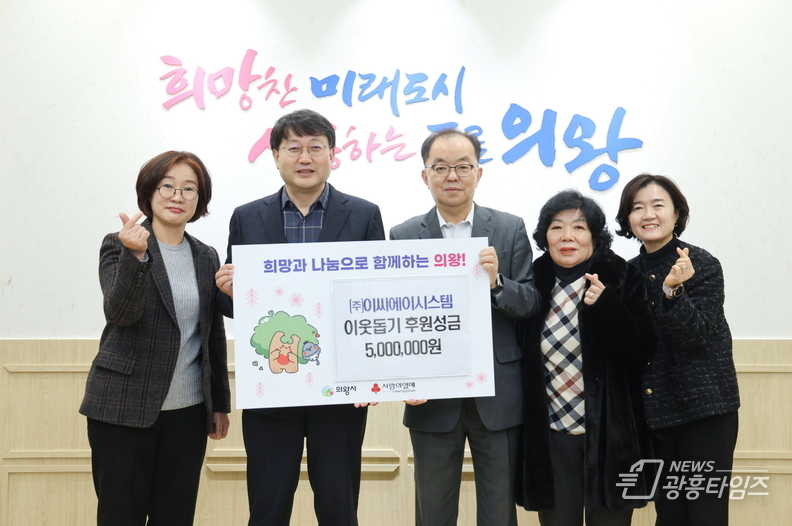 [광흥타임즈 = 구민지 기자] 의왕시는 12월 16일 ㈜이씨에이시스템에서 지역사회 나눔 실천을 위한 성금 500만원을 기탁했다고 밝혔다.