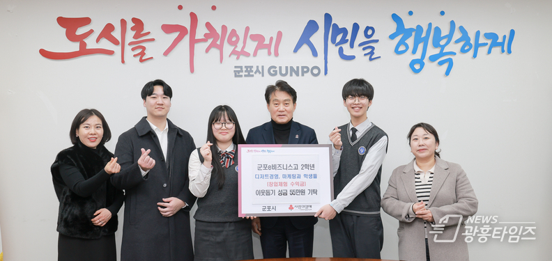 하은호 군포시장은 “지난 10월에 이어 연말에도 군포e비즈니스고 학생들이 어려운 이웃을 위해 따뜻한 나눔을 실천하여 주심에 깊이 감사드린다”며 “이러한 청소년들의 선한 영향력이 지역사회 전체에 기부문화로 확산되길 바란다”고 말했다.