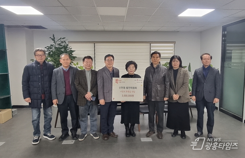 [광흥타임즈 = 조수제 기자] 지역사회 발전을 위해 모인 신천동 발전위원회에서 지난 12월 23일 신천동 취약계층 지원을 위한 후원금 300만 원을 전달했다.