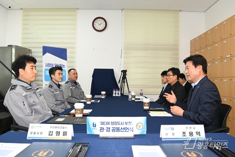 [광흥타임즈 = 조수제 기자] 부천시와 부천원미경찰서는 지난 11일 중앙지구대에서 ‘미디어 청정도시 부천’ 관·경 공동 선언식을 열고 공공장소 촬영 질서 확립을 위한 협력 대응을 강화하기로 했다.