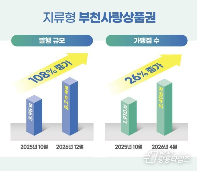 [광흥타임즈 = 조수제 기자] 부천시가 지역경제 선순환을 위해 도입한 지류형 지역화폐 ‘부천사랑상품권’이 시행 반년 만에 발행 규모와 사용처가 모두 꾸준히 늘며 지역 상권에 활기를 더하고 있다.