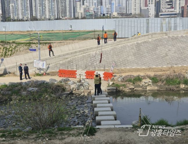 [광흥타임즈 = 조수제 기자] 군포시는 4월 13일 안양천 일원에서 시간당 100mm 이상의 극한강우 상황을 가정한 재난 대응 및 복구 훈련을 실시했다.