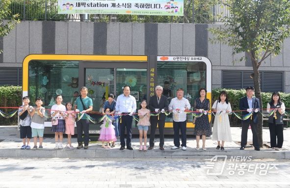 [광흥타임즈 = 구민지 기자] 오산시 새싹스테이션(영유아 등·하원쉘터) 2호가 이편한세상오산세교 아파트에 설치됐다.