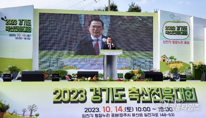 [광흥타임즈 = 조수제 기자] 경기도의회 농정해양위원회 이오수 의원(국민의힘, 수원9)이 14일 임진각 평화누리공원에서 열린 ‘2023 경기도 축산진흥대회’에 참석, 도시와 농촌이 소통·상생하는 경기축산 한마당을 둘러보고 관계자를 격려했다.