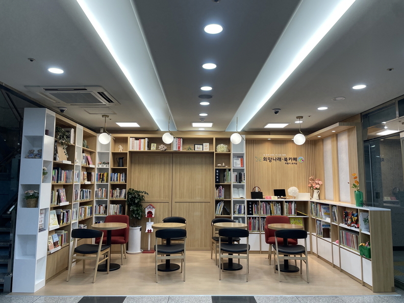 희망나래장애인복지관 북카페 조성은 민선8기 공약사업으로, 복지관을 찾는 시민과 장애인들에게 휴식을 주는 편안하고 따뜻한 공간을 제공하기 위해 기존 공간을 재탄생시켰다.