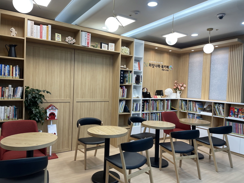 북카페에는 원목 서가와 휠체어 접근이 쉬운 가구를 설치해 안락한 독서 환경을 조성했으며, 점자도서, 큰 글자 도서, 오디오북 등 장애인을 위한 다양한 형태의 도서 800여 권 비치했다.