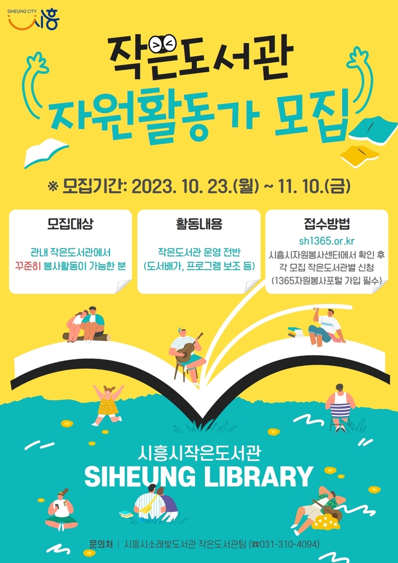 [광흥타임즈 = 조수제 기자] 시흥시는 작은도서관의 안정적인 운영과 활성화를 위해 작은도서관 운영에 함께할 자원활동가를 10월 23일부터 11월 10일까지 모집한다.