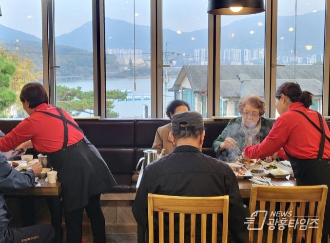 [광흥타임즈 = 구민지 기자] 의왕시 백운호수에 위치한 ‘코다리 명가’에서 관내 어르신들에게 따뜻한 식사를 대접했다.