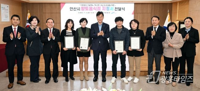 지난 6일 시청 제1회의실에서 이민근 안산시장과 육광심 한국호텔관광교육재단 이사장, 정동관 한국외식업중앙회 안산단원구지부장 및 향토음식점 대표자 등이 참석한 가운데 향토음식점 지정서 전달식을 가졌다.