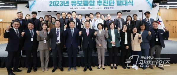 [광흥타임즈 = 조수제 기자] 경기도교육청과 경기도청은 7일 남부청사 컨퍼런스룸(2층)에서 유보통합 추진단 발대식을 개최하고, 안정적이며 체계적인 유보통합 실현을 위해 힘을 모으기로 했다.