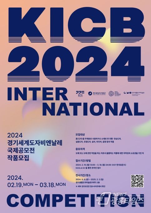 [광흥타임즈 = 조수제 기자] 한국도자재단이 ‘2024 경기세계도자비엔날레(KICB, Korean International Ceramic Biennale) 국제공모전’ 공모 요강을 공식 발표하고 오는 3월까지 온라인 접수에 나선다.