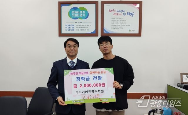 [광흥타임즈 = 구민지 기자] 의왕시는 부곡동에 소재한 타이거에듀영수학원에서 관내 저소득층 자녀를 위해 써달라며 장학금 200만 원을 부곡동주민센터에 기부했다고 15일 밝혔다.