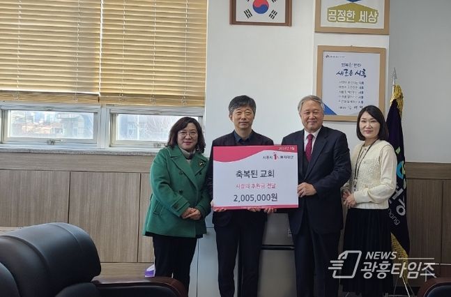 후원금 전달식에는 축복된교회의 김성득 목사와 교회 관계자가 참석했다. 기탁된 후원금은 시흥시1%복지재단을 통해 관내 도움이 필요한 아동과 어르신들에게 전달할 예정이다.