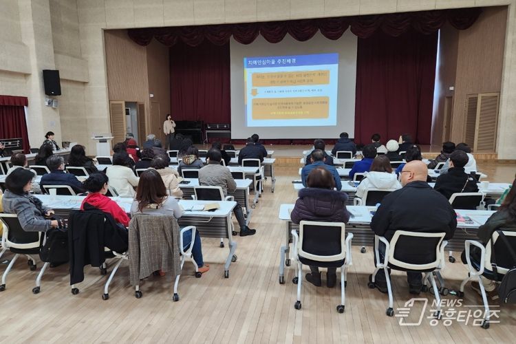 [광흥타임즈 = 조수제 기자] 시흥시 목감동 행정복지센터에는 지난 22일 치매안심마을 사업 시작을 알리는 사업설명회가 열렸다. 설명회에는 주민과 통장단 약 60명이 참석했다.