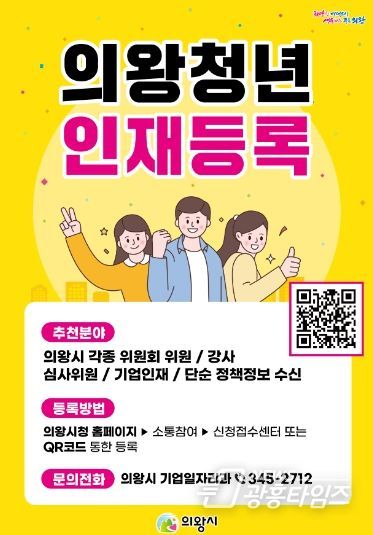 [광흥타임즈 = 구민지 기자] 의왕시는 지난 22일부터 의왕시 홈페이지를 통해 의왕시에 거주 또는 재학‧재직하는 19세~39세 청년들을 대상으로 ‘의왕청년 인재등록’을 시작하고 청년인재풀 가동에 나설 계획이라고 밝혔다.
