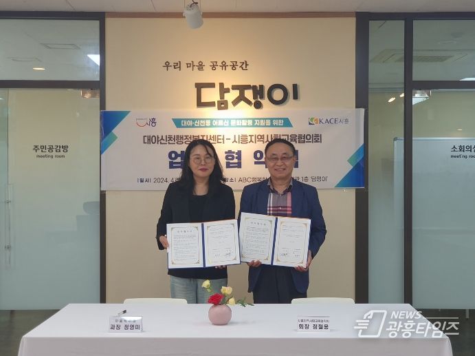 [광흥타임즈 = 조수제 기자] 시흥시 대야ㆍ신천 행정복지센터(센터장 정호기)는 지난 4월 30일 시흥지역사회교육협의회와 업무협약을 체결해 어르신들의 문화 활동을 활성화하는 데 힘을 쏟기로 했다.