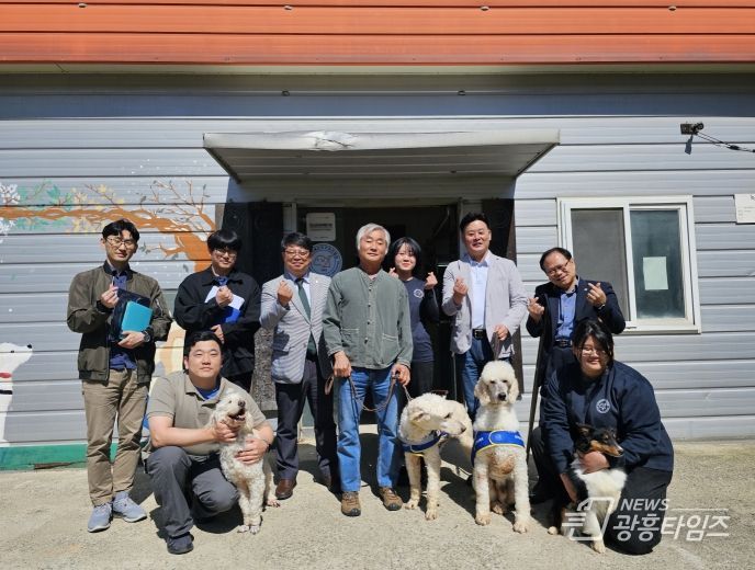 [광흥타임즈 = 조수제 기자] 원, 박재용(보건복지위원회 위원, 더불어민주당, 비례) 의원과 함께 경기도 장애인복지과 관계자가 참석한 가운데 '장애인 도우미견 보급 활성화'를 위해 (사)한국장애인도우미견협회와 시흥시 동물누리 보호센터를 방문했다.