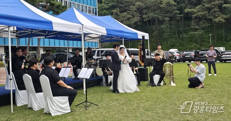 호른연주자인 신랑은 “브라스 앙상블 연주회도 함께 진행할 수 있으면 좋겠다고 생각하던 차에 경기도 옛 청사 잔디마당의 탁 트이고 아름다운 자연에 반해 결혼식을 올리기로 결정했다”면서 신부는 “모든 준비를 직접 해야 한다는 어려움도 있지만, 우리만의 특별한 결혼식을 만들 수 있어 즐겁고 행복했다”고 소감을 밝혔다.