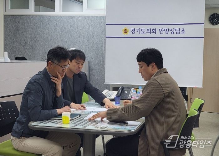 [광흥타임즈 = 조수제 기자] 경기도의회 도시환경위원회 유영일 위원장(국민의힘, 안양5)은 29일 도의회 안양상담소에서 청년주택 및 행복주택 주차대수 완화 제안 관련으로 안양시 철도교통과 이준표 과장, 지역주민들과 면담을 실시했다.