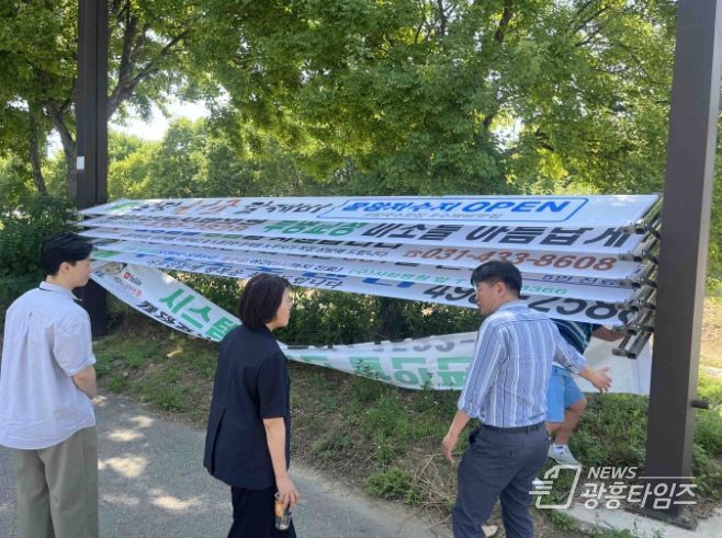 특히 지난 18일에는 경기도청 건축디자인과 직원 2명이 시흥시를 찾아 시 곳곳에서 추진 중인 유기 간판 철거 현장을 시찰하고, 현수막 지정 게시대의 안전 점검 과정을 지켜봤다.