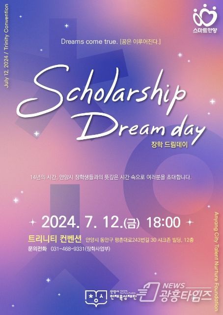 [광흥타임즈 = 조수제 기자] 안양시 인재육성재단은 오는 12일 평촌 트리니티 컨벤션에서 ‘장학 드림데이’ 행사를 개최한다고 4일 밝혔다.