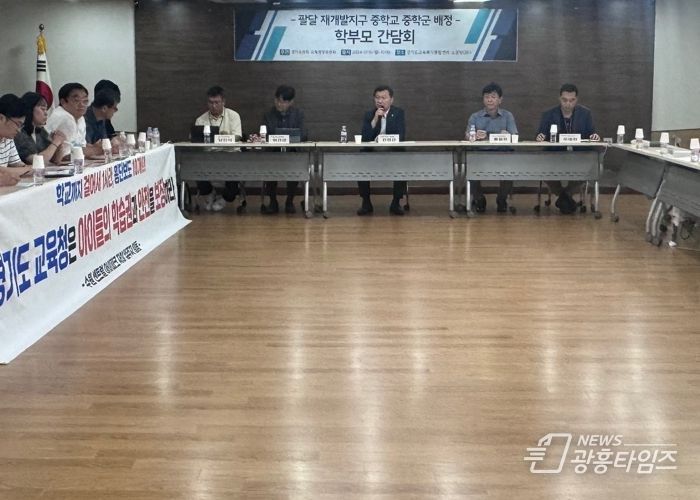 이날 간담회에는 경기도교육청 학교설립기획과, 수원교육지원청 기획경영과 및 팔달 재개발지구 6․10구역 학부모, 입주자대표 등 50여 명이 참석하여 중학교 배정과 관련하여 심도 있는 의견을 나눴다.
