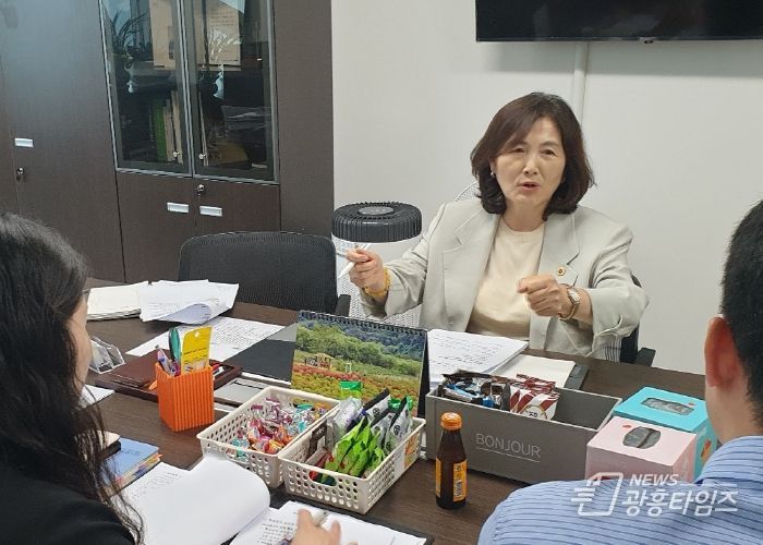 [광흥타임즈 = 조수제 기자] 경기도의회 교육기획위원회 김영희 의원(더불어민주당, 오산1)은 지난 12일 경기도교육청 학교급식보건과와 정담회를 갖고, 학교급식 조리종사자의 근무환경과 처우개선 방안을 점검했다.