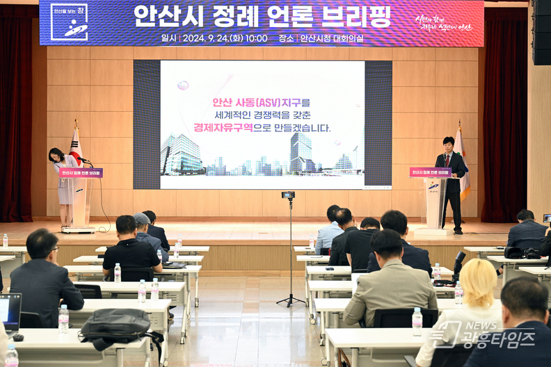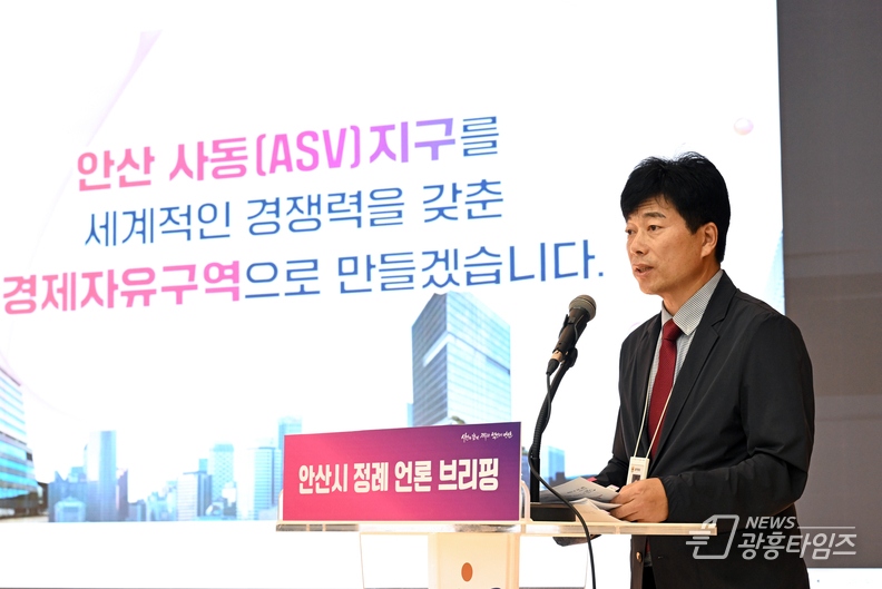 [광흥타임즈 = 조수제 기자] 안산시는 24일 오전 시청 대회의실에서 개최한 9월 언론브리핑에서 민선8기 역점사업 가운데 하나인 경기 경제자유구역 안산 사동(ASV*) 지구의 추가지정을 위한 준비가 순조롭게 진행되고 있다고 밝혔다.