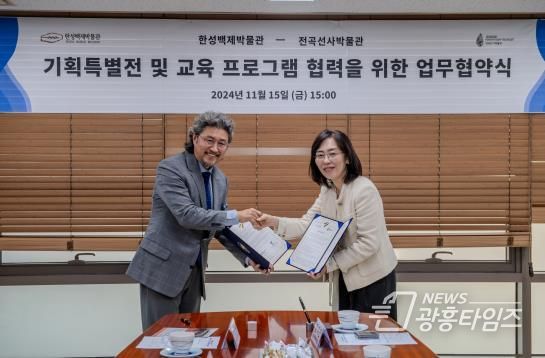 [광흥타임즈 = 조수제 기자] 경기문화재단 전곡선사박물관은 11월 15일(금)에 한성백제박물관과 특별전 공공 개최 및 교육프로그램 운영 협력을 위한 업무협약을 체결하였다.