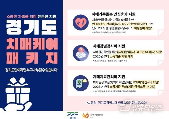 경기도는 이런 내용을 담은 ‘2025 경기도 치매케어패키지’ 계획을 발표하고 10일부터 즉각 시행에 들어간다고 9일 밝혔다.