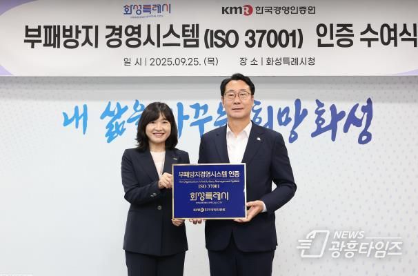 [광흥타임즈 = 구민지 기자] 화성특례시가 국제표준화기구(ISO)에서 제정한 부패방지경영시스템 (ISO37001) 인증을 획득했다.