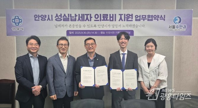 [광흥타임즈 = 조수제 기자] 안양시는 지난달 30일 오후 2시30분 3층 기획경제실장실에서 관내 의원인 서울수안과와 ‘성실납세자 의료비 지원’ 업무협약을 체결했다고 1일 밝혔다.