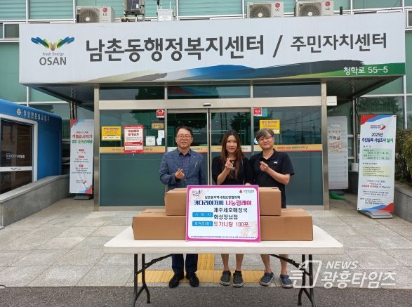 [광흥타임즈 = 조수제 기자] 오산시 남촌동행정복지센터(동장 정찬웅)는 지난 10월 2일, 제주세호해장국 화성정남점(대표 이은정)으로부터 추석 명절을 맞아 취약계층 지원을 위한 도가니탕 100개(120만 원 상당)를 전달받았다고 밝혔다.