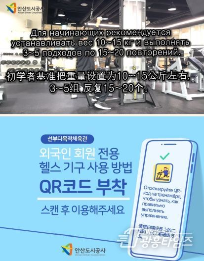[광흥타임즈 = 조수제 기자] 안산도시공사는 선부다목적체육관을 이용하는 외국인 주민의 편의를 위해 다국어 안내 서비스를 제공하고 있다고 15일 밝혔다.