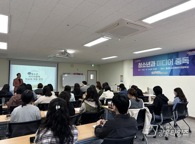 이날 강의는 최근 AI 기술의 급속한 발전으로 인해 나타나는 다양한 사회적 문제를 예방하기 위해서‘청소년과 미디어 중독’을 주제로 한국IT전문학교 홍성관 교수가 진행했다.