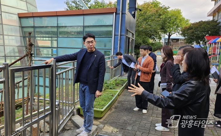 [광흥타임즈 = 조수제 기자] 경기도의회 교육행정위원회 문승호 의원(더불어민주당, 성남1)은 10월 20일 오전 10시 30분 성남 수정초등학교를 방문해 학교 안전사항을 점검했다.