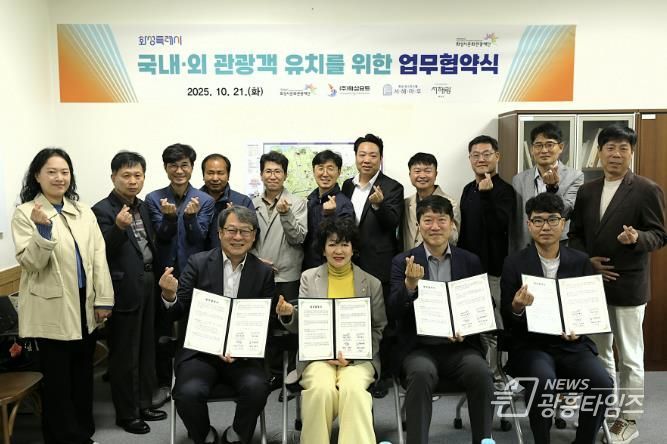 [광흥타임즈 = 구민지 기자] 화성시문화관광재단, 화성서해마루 유스호스텔, 제부도해상케이블카 서해랑, ㈜화성요트는 국내․해외 관광객 유치로 화성시 지역관광 활성화를 위한 업무협약(MOU)을 21일 오전 화성시문화관광재단에서 체결했다.