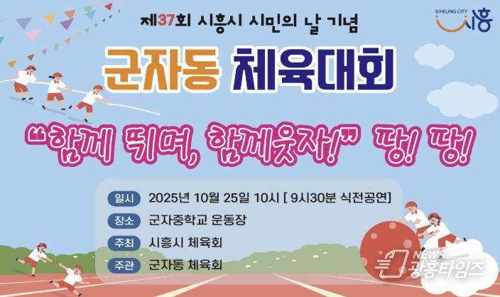 [광흥타임즈 = 조수제 기자] 시흥시 군자동 체육회는 제37주년 시민의 날을 맞아 오는 25일 군자중학교 운동장에서 ‘함께 뛰며, 함께 웃자’ 체육대회를 개최한다.