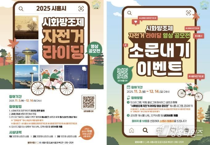 이번 공모전은 11월 3일부터 0시부터 12월 14일 24시까지 진행되며, 전 국민 누구나 참여할 수 있다. 참가자는 시흥시 구간의 시화방조제 자전거도로를 달리는 장면을 20초 이내의 짧은 영상(인스타그램 릴스 또는 유튜브 숏츠)으로 제작해 누리소통망(인스타그램, 유튜브) 계정에 게시하면 된다.