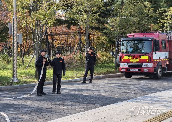 [광흥타임즈 = 조수제 기자] 경기도교육청이 4일 북부청사에서 의정부소방서 금오119안전센터와 함께 합동 소방훈련을 실시했다.