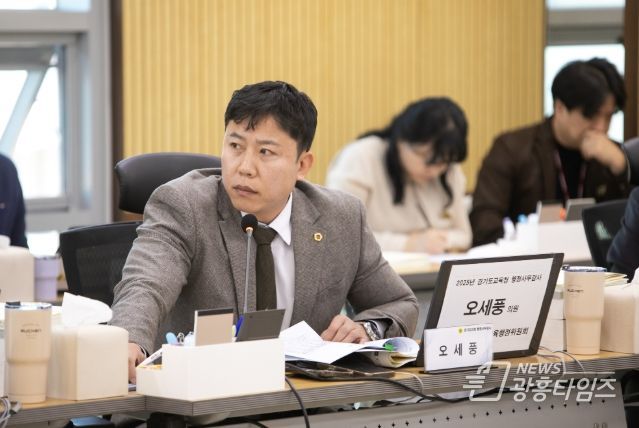[광흥타임즈 = 조수제 기자] 경기도의회 교육행정위원회 오세풍 의원(국민의힘, 김포2)은 12일 경기도교육청 남부연수원에서 열린 2025년 교육행정위원회 행정사무감사에서 미디어교육센터의 운영 실태를 점검하며 “학교 수업과 연계된 교원 연수와 정신건강 프로그램도 함께 강화해야 한다”고 강조했다.