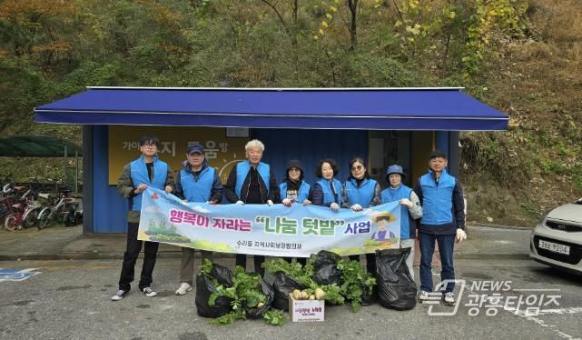‘행복이 자라는 나눔 텃밭’은 산본가야2차 아파트 단지 내 유휴 부지(약 140㎡)를 주택관리공단으로부터 제공받아, 협의체 위원들이 직접 다양한 농작물을 재배하고 수확하여 어려운 이웃과 나누는 수리동만의 특화사업이다. 올해는 8월에 가을무 모종을 심어 정성껏 가꾸어왔으며 풍성한 수확의 기쁨을 함께 나누게 됐다.