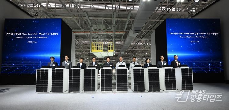 14일 오토랜드 화성에서는 중형 모델 PV5를 생산할 EVO 이스트(East) 공장 준공식과 대형 모델 PV7·PV9 생산을 위한 EVO 웨스트(West) 공장 기공식이 동시에 열렸다. 이날 행사에는 김동연 경기도지사를 비롯해 김민석 국무총리, 정의선 현대자동차그룹 회장, 송호성 기아 사장, 정명근 화성시장 등 주요 인사 200여 명이 함께했다.