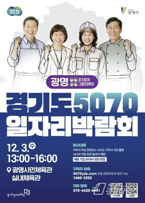 시는 오는 12월 3일 오후 1시 광명시민체육관에서 ‘경기도5070일자리박람회’를 개최한다고 24일 밝혔다.